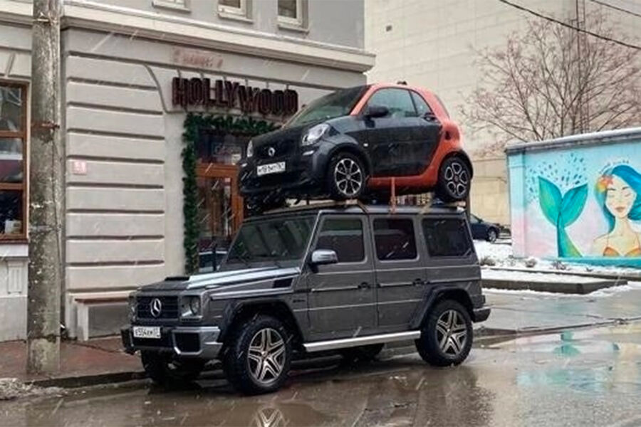 В Ростове-на-Дону водитель перегонял Smart на крыше Gelandewagen