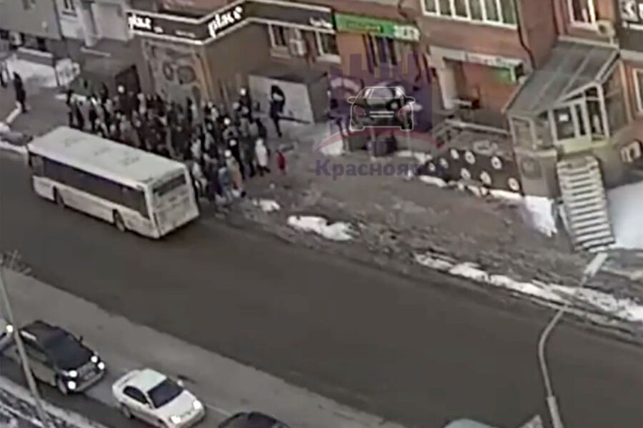 Видеозаписи инцидента опубликовал Telegram-канал «ЧП Красноярск». На одном из роликов видно, как автобус притормаживает у остановки и из него быстро выходят пассажиры. На втором запечатлен момент применения оружия.