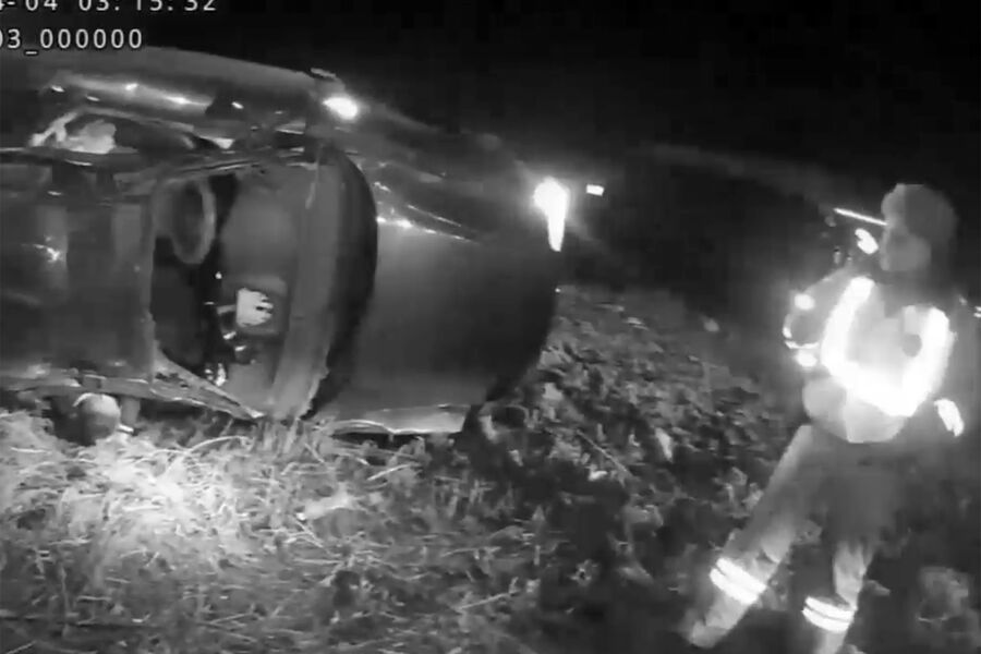 На видеозаписи погони, опубликованной Telegram-каналом Mash Siberia, видно, что наехав на препятствие, автомобиль перевернулся несколько раз, после чего оказался лежащим на боку в кювете. Пассажир автомобиля госпитализирован.