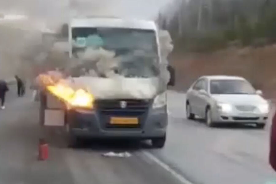 Отмечается, что у маршрутного такси №407 был первый утренний рейс. По пути следования у автобуса случилось короткое замыкание, под капотом начался пожар. Водитель высадил пассажиров. Судя по видео, машину пытались потушить с помощью огнетушителя, но не смогли.