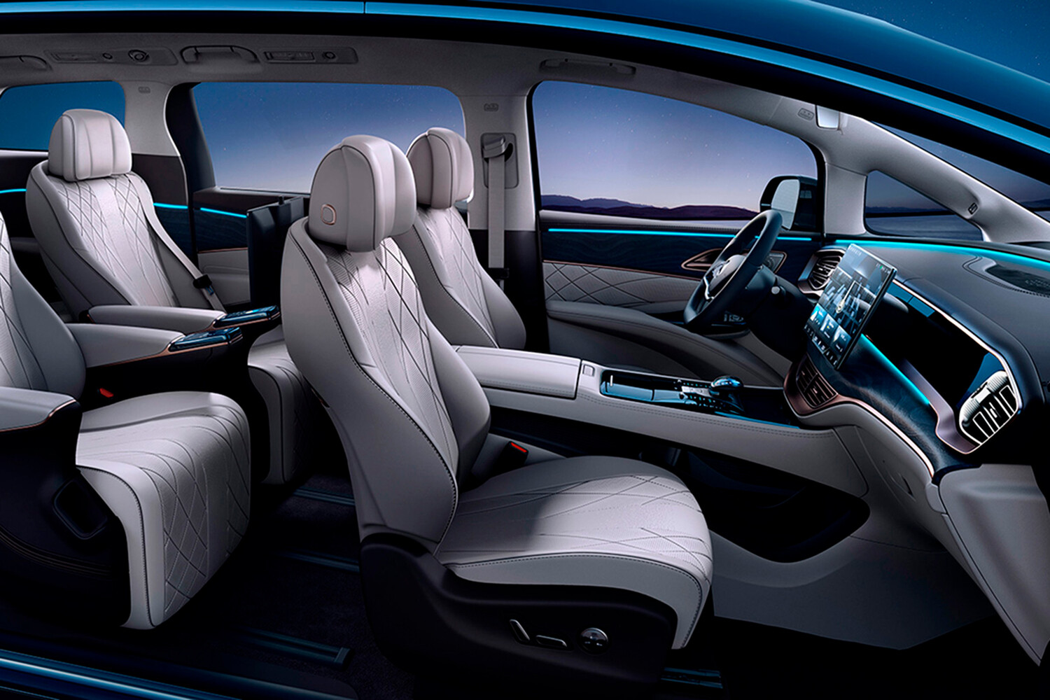 В автомобиле могут разместиться семь пассажиров с аналогичным числом чемоданов или с ручной кладью. В салоне установлено семь дисплеев: цифровая приборная панель, центральный комплекс мультимедиа (15,6 дюйма), проекционный дисплей, два интегрированных в спинки передних сидений экрана, а также сенсорные дисплеи в подлокотниках.