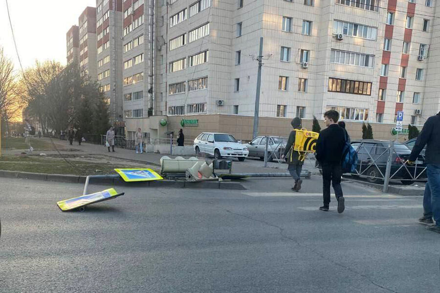 На фотографии, опубликованной Telegram-каналом «В Татарстане поймут», видно, что на столбе также находились дорожные знаки. Упавший светофор регулировал движение на пешеходном переходе.