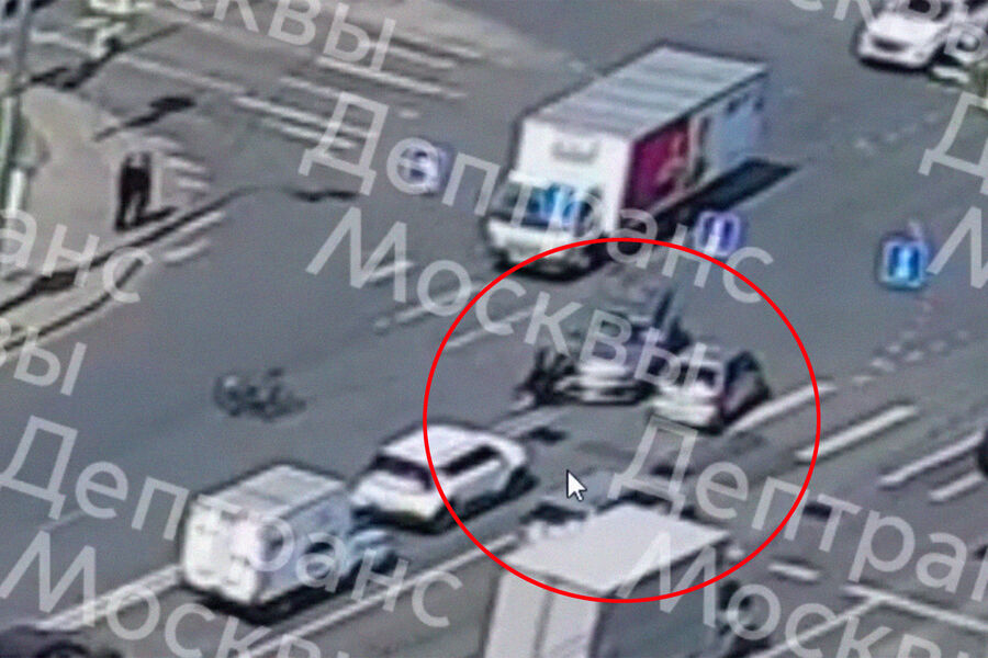 Судя по видео, мужчина на велосипеде ехал по пешеходному переходу, когда в него врезался автомобиль. От удара велосипед отлетел сторону, а мужчина упал на проезжую часть. После этого он попытался самостоятельно подняться.