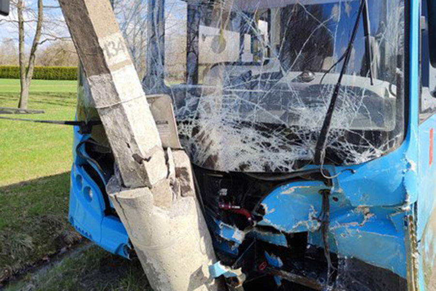 На записи видно, что автобус следует по двухполосной дороге, разделенной сплошной линией разметки. Когда встречный седан Kia Rio белого цвета пересек сплошную, водитель автобуса попытался сместиться к обочине, однако легковой автомобиль врезался в него. После этого автобус ударился правой частью кузова о столб.