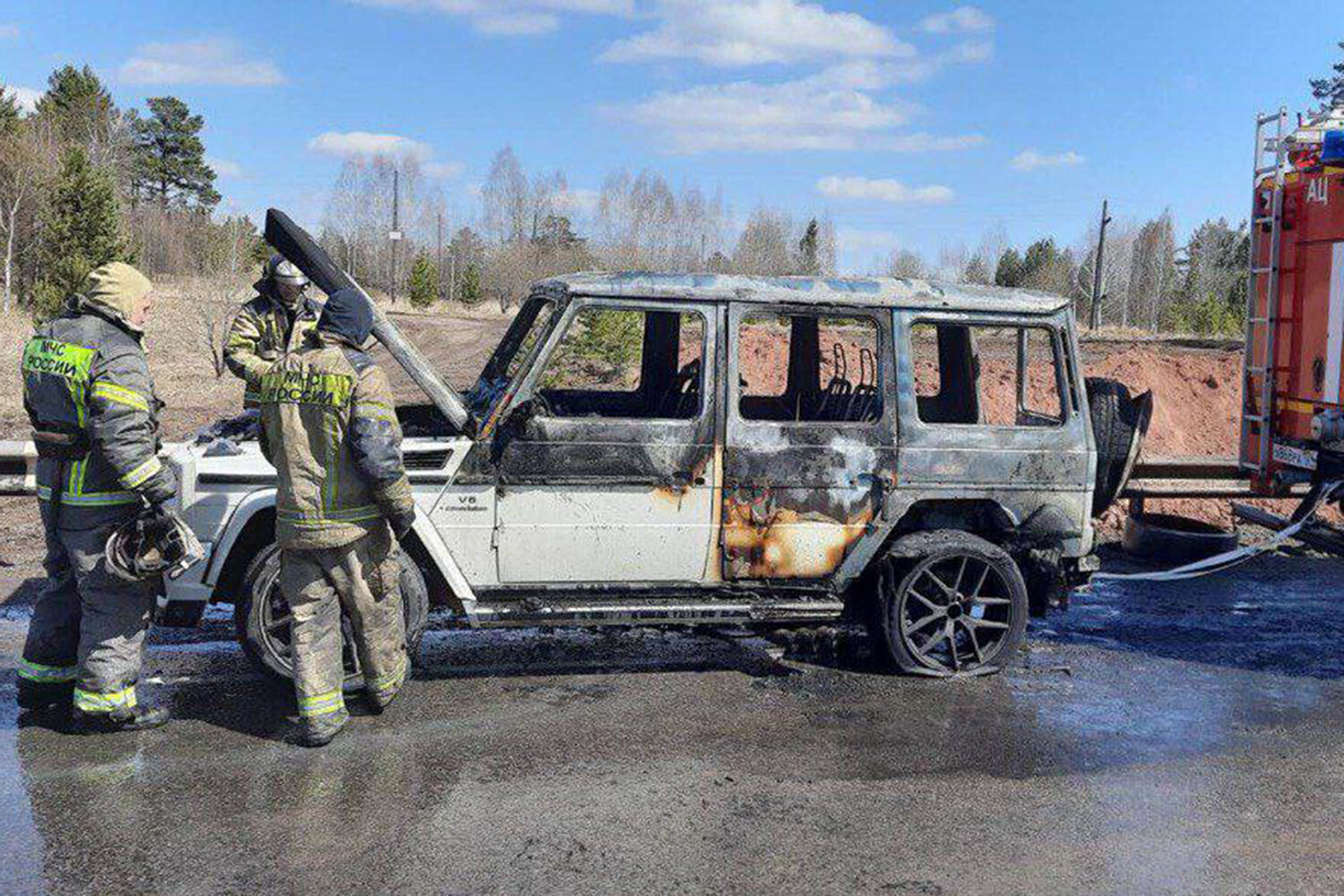 В Красноярском крае внедорожник Mercedes-Benz G-Klasse сгорел, когда водитель попытался скрыться от сотрудников ГИБДД, сообщает краевое ГУ МВД России.