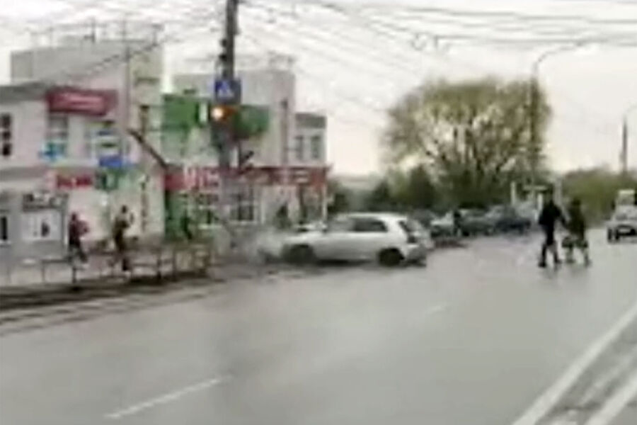 Пострадавшая госпитализирована. Сотрудники ГИБДД выясняют обстоятельства аварии. На видеозаписи с моментом инцидента видно, что светофор около пешеходного перехода переключился на красный сигнал для автомобилей, а люди начали переходить проезжую часть. В этот момент подъехавший автомобиль врезался в опору дорожного знака, которая упала на женщину, подходившую к переходу.