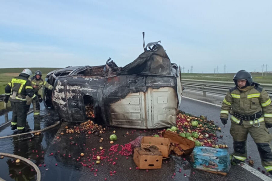 Фургон «Газель» опрокинулся и загорелся после ДТП на трассе в Крыму. Об этом сообщает МВД по региону.