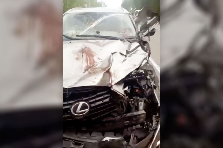 Сбитый на трассе в Хабаровском крае медведь порвал зубами металл Lexus, пытаясь достать людей