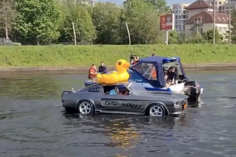 В Санкт-Петербурге в акватории Малой Невки патруль задержал катер, стилизованный под автомобиль Ford Mustang, сообщается в паблике «Подслушано Остров Декабристов» в соцсети «ВКонтакте».