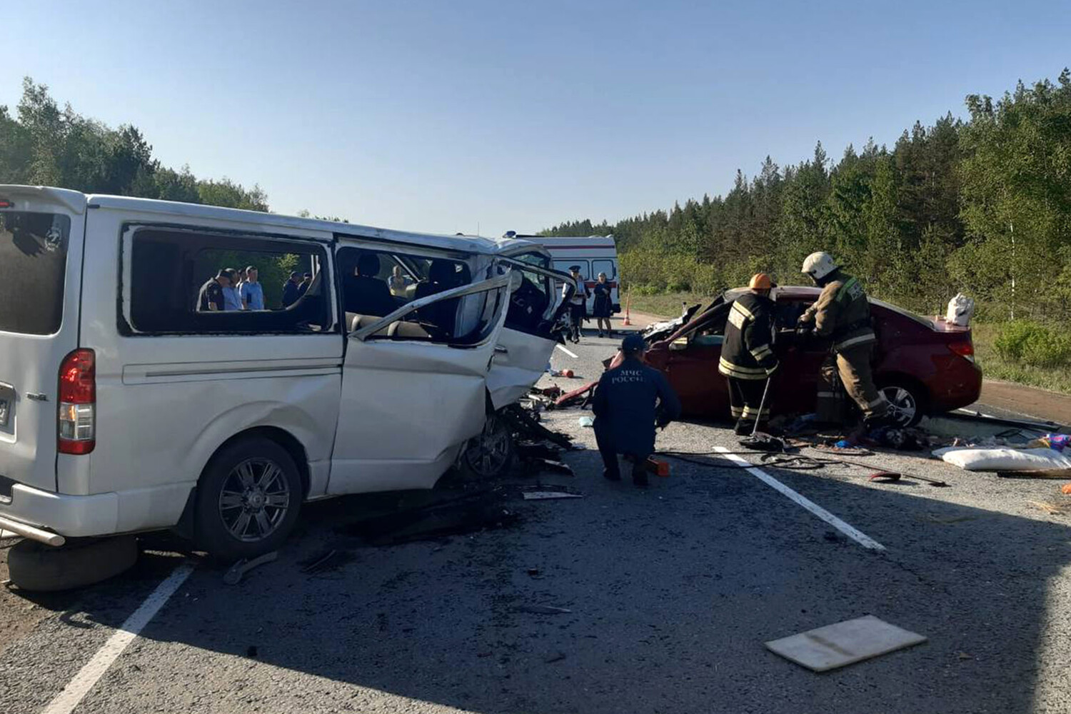 Авария произошла днем на 96-м километре автодороги «Омск — Черлак». По предварительным данным, водитель автомобиля Chevrolet Cruze, двигаясь со стороны Омска, выехал на встречную полосу и столкнулся с минивэном Toyota Hiace.
