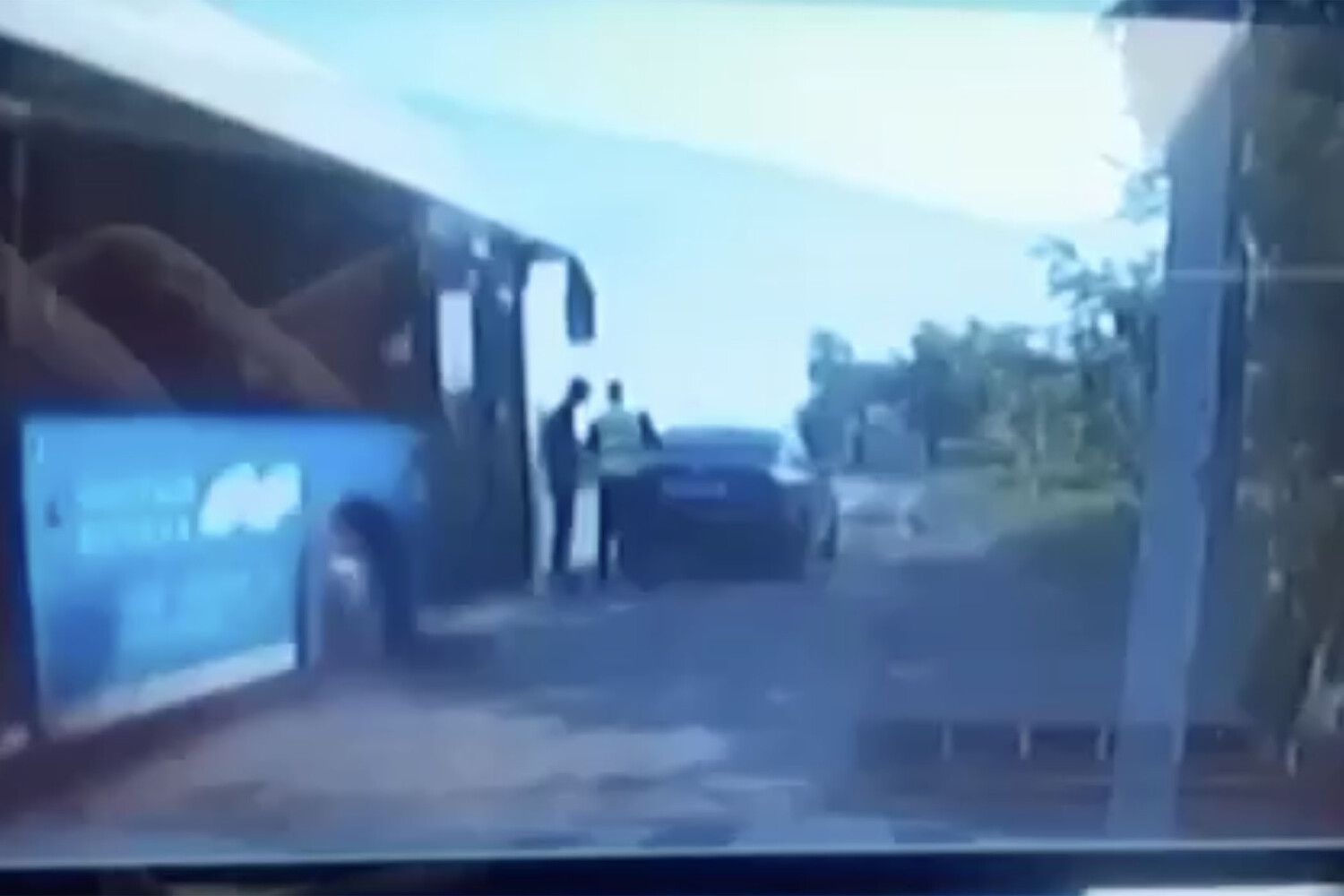 На видеозаписи инцидента, размещенной в паблике «Омск Live» в соцсети «ВКонтакте», видно, что инспектор стоит на обочине у машины спиной к приближающемуся автобусу, рядом с ним находится водитель. Автобус при этом выехал на обочину и сбил мужчин, а также врезался в заднюю часть припаркованного автомобиля, отчего тот переместился вперед.