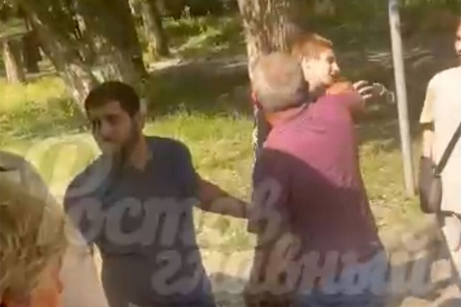Отмечается, что инцидент произошел в автобусе, который направлялся в жилой район Суворовский. По данным канала, юноша в очках начал оскорблять мать водителя и они вышли поговорить.