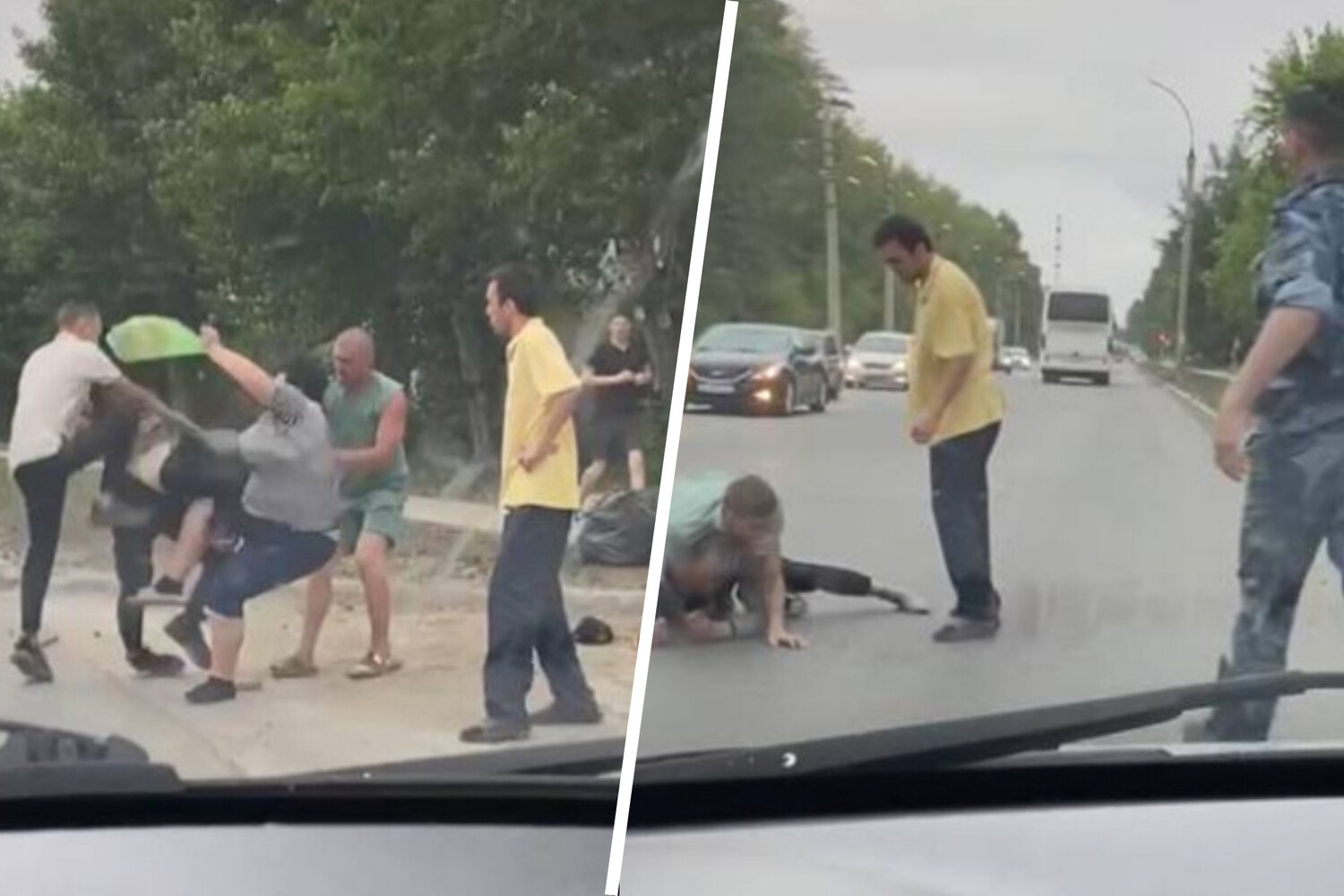 Водители автомобилей и автобусов были вынуждены объезжать потасовку, подавая звуковые сигналы. В итоге к сцепившимся на дороге дерущимся подбежал мужчина в камуфляжной форме и попытался их разнять.