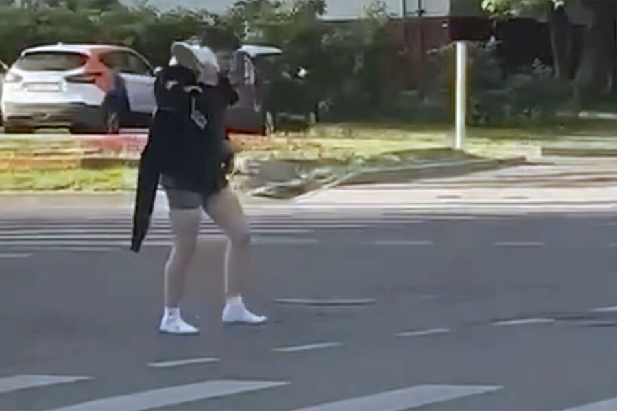 Пешеход в трусах, занятый разговором с кроссовком, попал на видео