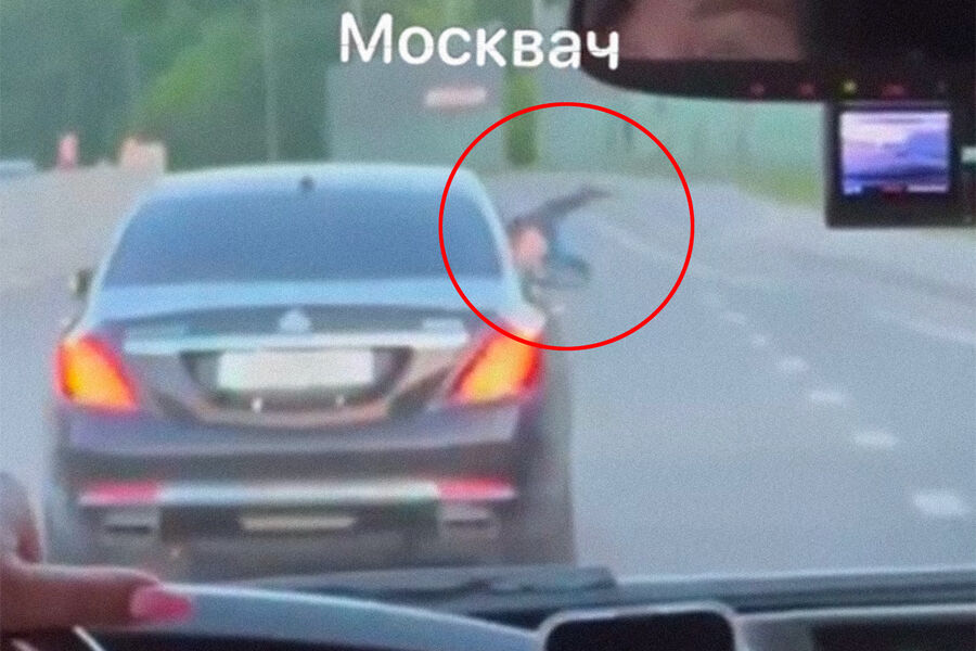 На кадрах видно, что черный седан Mercedes-Benz движется в потоке автомобилей. Пассажир, сидящий рядом с водителем, выставил оружие из окна и произвел не менее семи выстрелов. Спустя короткое время с автомобилем поравнялся патрульный автомобиль ДПС. Сотрудники ГИБДД задержали людей, находившихся в салоне. На фото с места происшествия видны трое инспекторов и двое молодых людей у стоящего на обочине Mercedes с открытым багажником.