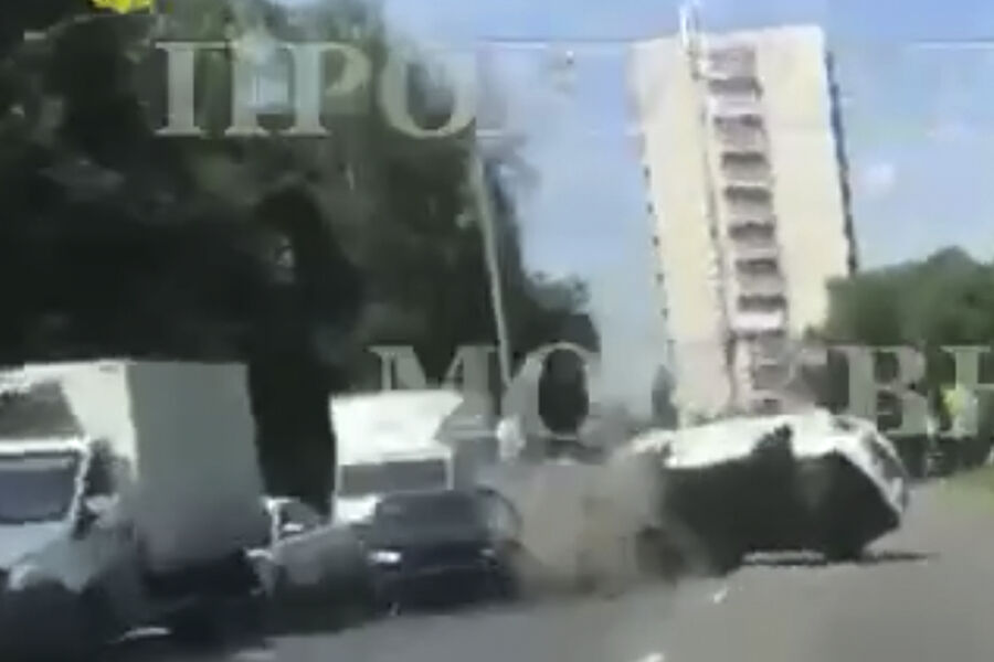 Авария с переворотом автомобиля Mercedes в Москве попала на видео