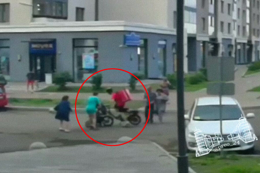 В Красноярске курьер службы доставки врезался в коляску с годовалым ребенком на дворовой территории, а затем устроил драку с водителем автомобиля Audi. Об этом сообщает Telegram-канал «Преображенский Красноярск».