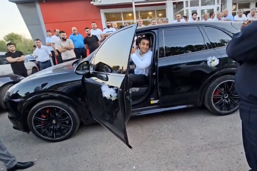 На видеозаписи, опубликованной полицейскими, водитель черного Porsche Cayenne со свадебными украшениями резко нажимает и отпускает педаль газа. Версия, высказанная участниками кортежа, в настоящее время проверяется, подчеркнули в полиции.