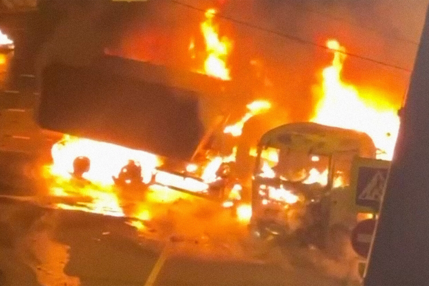 По предварительной версии, у одной из машин взорвался бензобак. На месте работают экстренные службы.