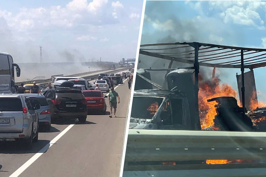 В пробке у Крымского моста загорелся грузовик. Об этом сообщает Telegram-канал «Mash на волне».