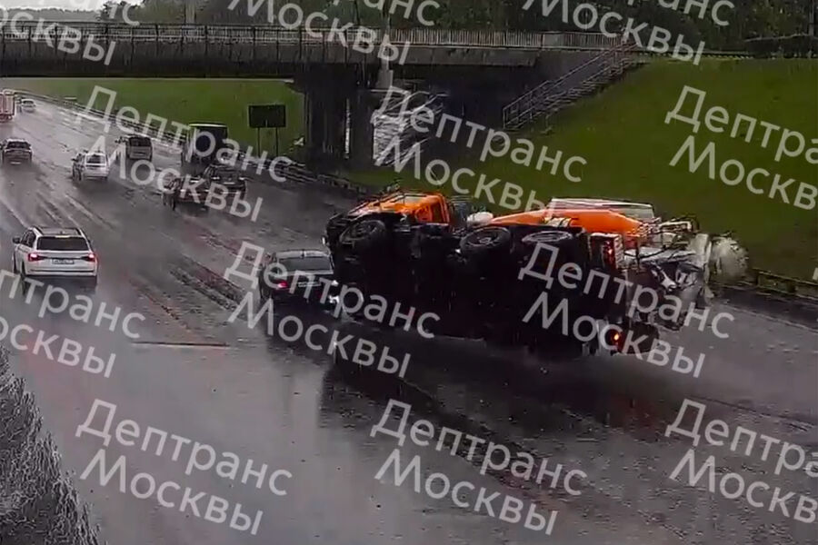 Автобетоносмеситель «КамАЗ» перевернулся на МКАД утром 19 июля. Об этом сообщает Telegram-канал «Дептранс. Оперативно».