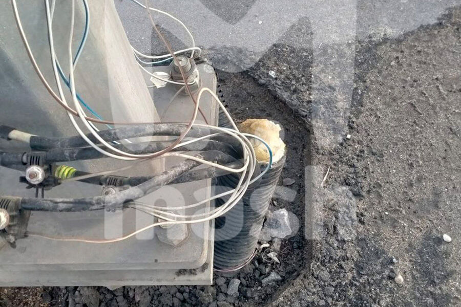 Прибывшие на ЦКАД специалисты заметили вскрытый люк на одной из опор световой мачты, из кабель-канала которого неизвестные выдрали 850 метров силового медного кабеля.