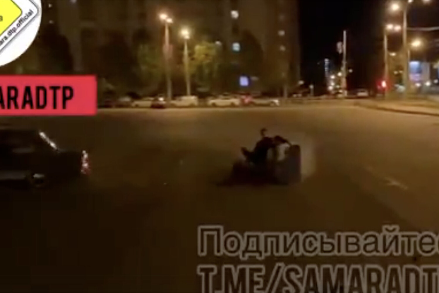 Судя по видео, на диван, привязанный к «Жигулям», сели два подростка. Автомобиль начал движение по кругу на большой скорости. В какой-то момент ребята не удержались и вылетели с дивана на асфальт.