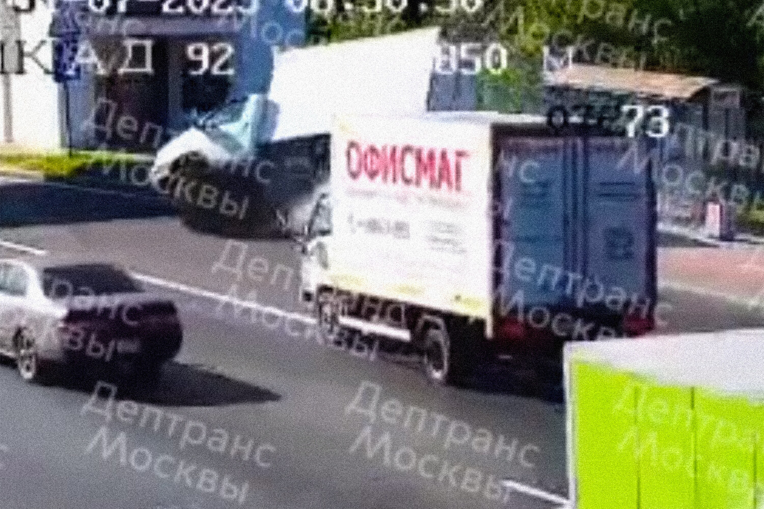 На видеозаписи с моментом происшествия видно, что автомобиль смещается в сторону автобусной остановки и опрокидывается на правый бок. На скамейке внутри остановочного павильона при этом сидит человек, еще два человека подошли к ней со стороны надземного пешеходного перехода.