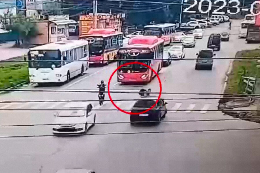 В Хабаровске велосипедист взлетел в воздух после наезда автомобиля, при этом не получив тяжелых травм. Об этом сообщает Telegram-канал Amur Mash и публикует видеозапись инцидента.