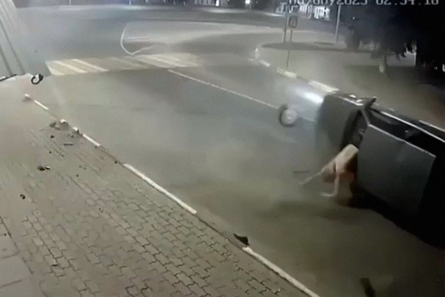 ДТП произошло накануне на улице Кирова. На видеозаписи с моментом аварии видно, что серый автомобиль Lada движется по улице на большой скорости. В повороте автомобиль налетел правым передним колесом на бордюр и перевернулся. После этого через проем лобового стекла вылез человек, опираясь на руки.