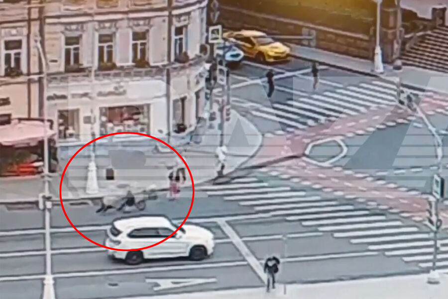 Курьер на электровелосипеде врезался в пенсионерку на пешеходном переходе в центре Москвы, женщина получила травмы. Запись происшествия опубликовал Telegram-канал Baza.