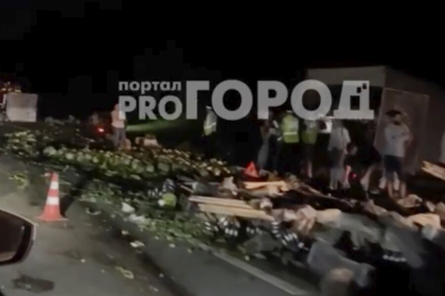 Инцидент произошел на трассе М7 в Чебоксарском районе у деревни Вурманкасы. Видео с места происшествия очевидцы опубликовали в соцсетях. На записи видно, что дорога и обочина засыпана обломками и побитой капустой.