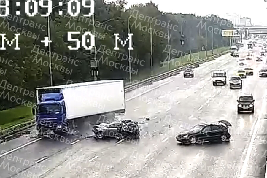 В Москве большегруз врезался в два легковых автомобиля, которые стояли на МКАД. Об этом сообщает Telegram-канал «Дептранс. Оперативно», который опубликовал запись происшествия.