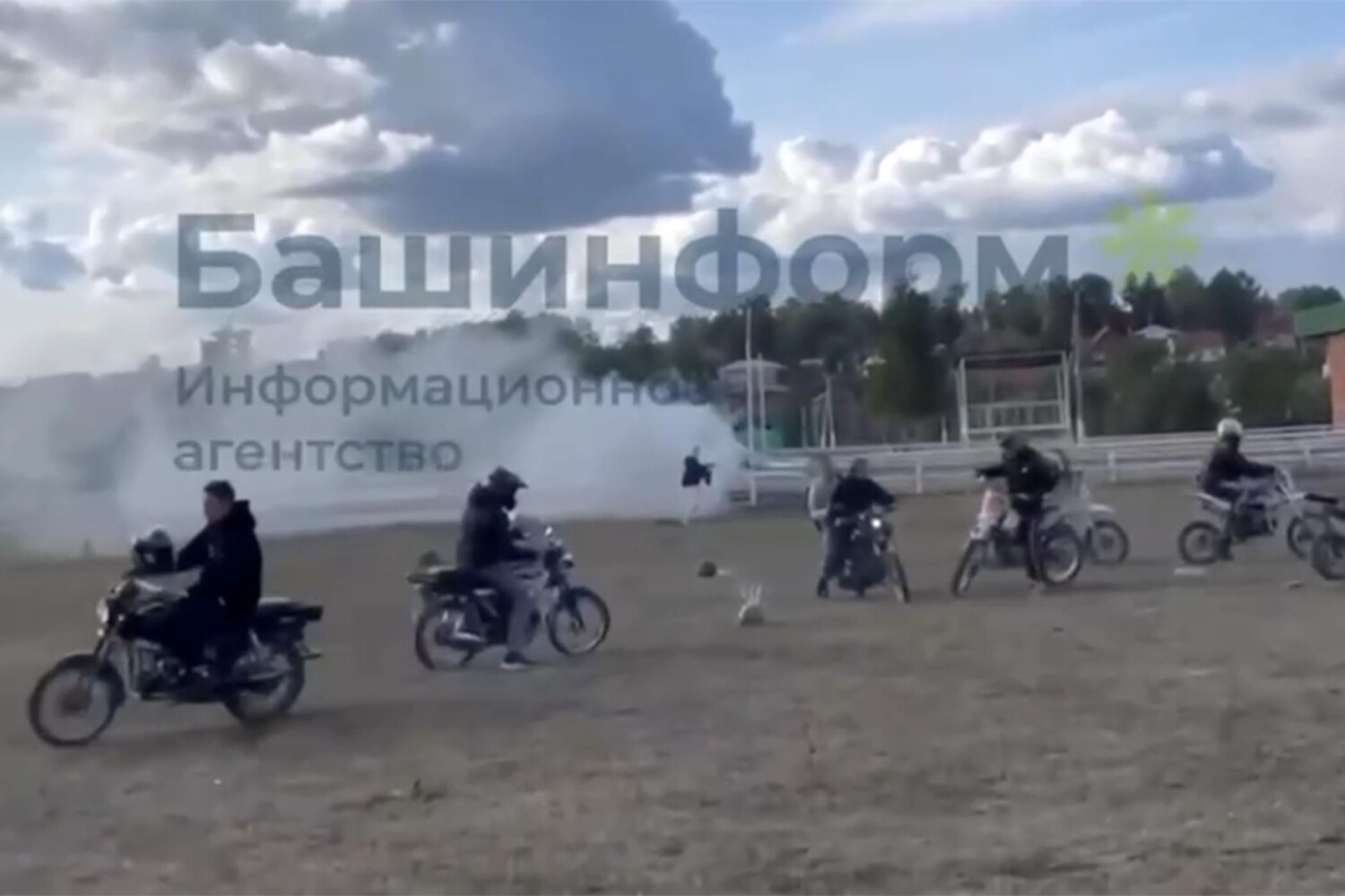 На кадрах с места происшествия, опубликованных изданием, видно, что на поле собрались более 10 мотоциклистов. Сотрудники ГИБДД не успели подъехать к ним, так как двигались вдоль ограды.