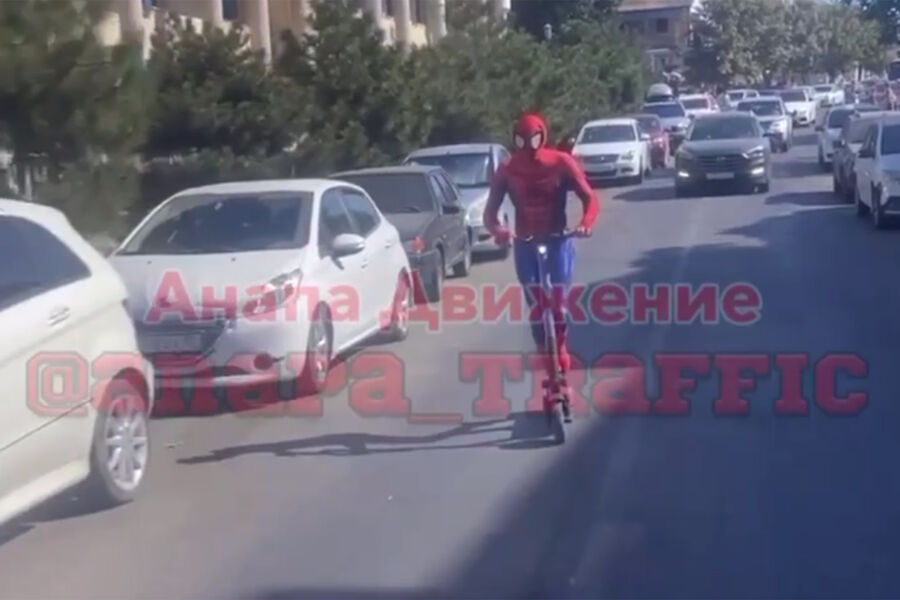 В Анапе мужчина на электросамокате в костюме Человека-паука врезался в припаркованную машину. Об этом сообщает Telegram-канал «Анапа Движение».
