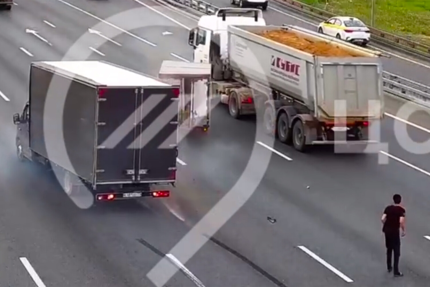 Появилось видео, как водитель уворачивается от грузовика на МКАДе