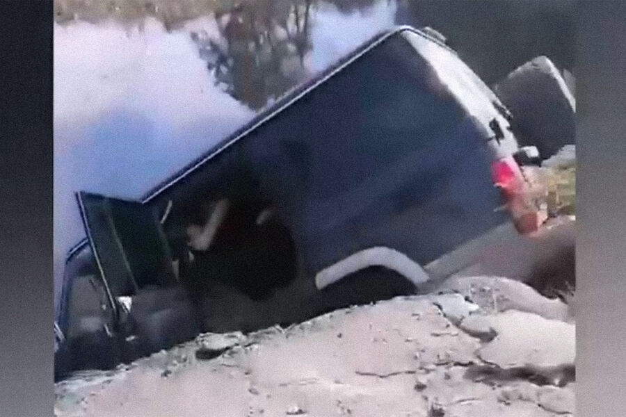 На кадрах с места происшествия видно, что передние колеса автомобиля погрузились в воду. Водитель смог покинуть машину самостоятельно через заднюю дверь.
