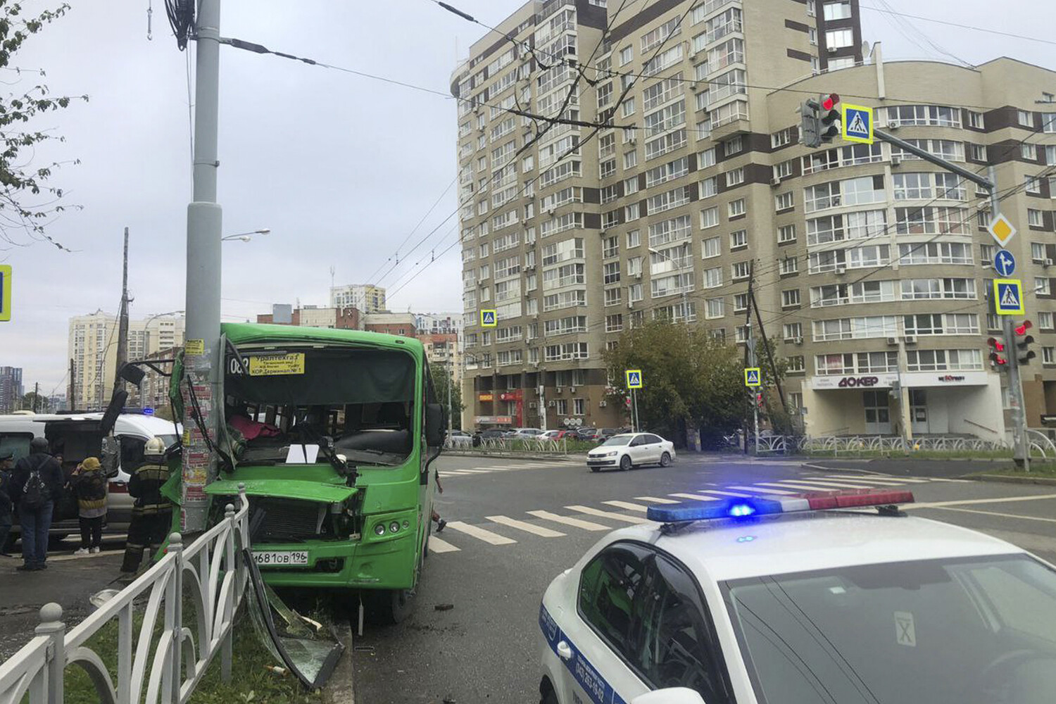 В Екатеринбурге автобус врезался в столб, 11 пассажиров госпитализировали