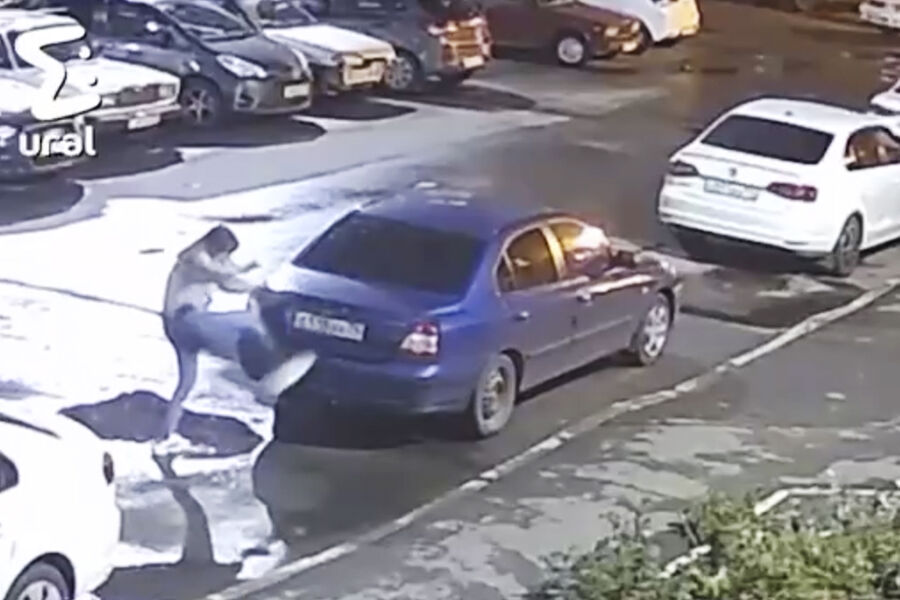 На кадрах видно, что женщина, идущая по дворовой территории, бьет ногой по заднему фонарю стоящего автомобиля Hyundai и наносит несколько ударов кулаками по крышке багажника. Затем она ударила ногой по задней двери припаркованного рядом Volkswagen и нанесла аналогичный удар по двери еще одной машины, у которой сработала сигнализация.