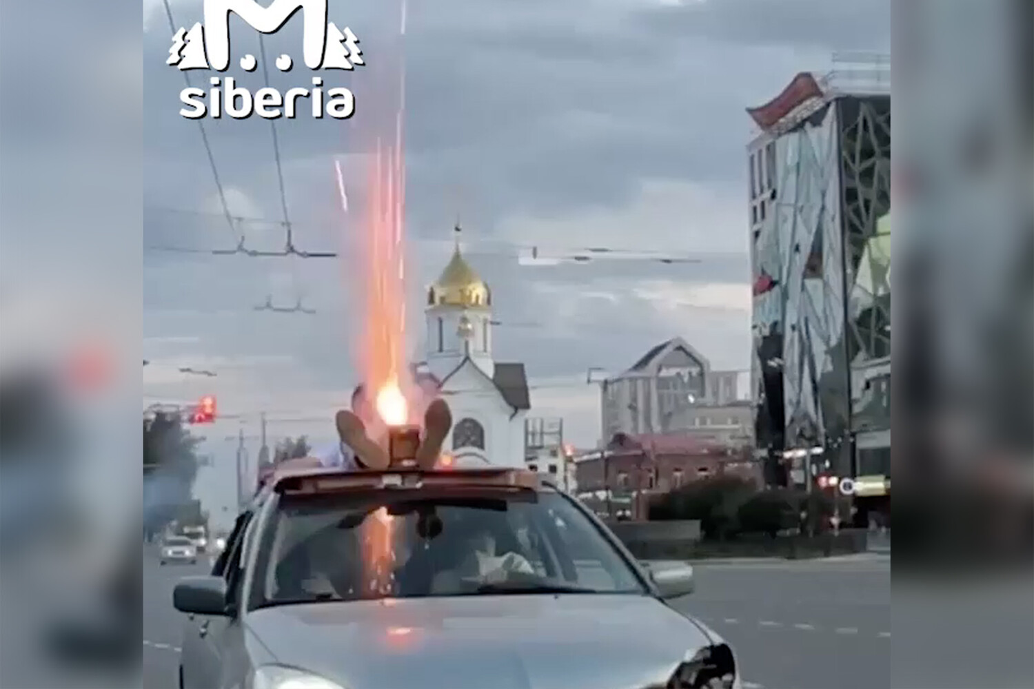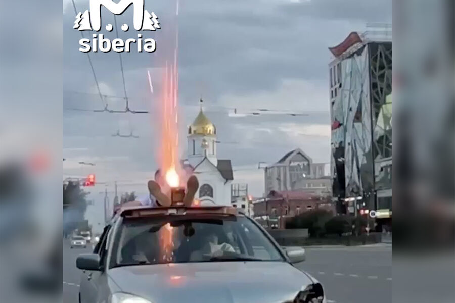 Блогер устроил фейерверк с крыши машины в центре Новосибирска