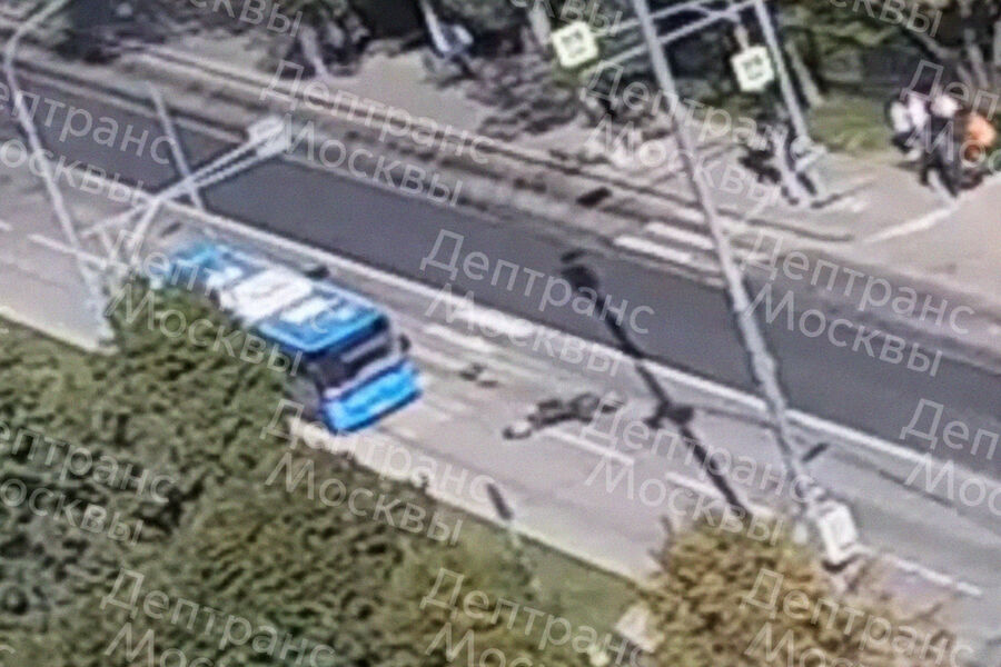 На видео, размещенном в Telegram-канале «Дептранс. Оперативно», видно, что наезд произошел в момент, когда пешеходы вышли из-за медленно двигавшегося в правом ряду автобуса. За мгновение до столкновения с пешеходами мотоцикл начал падать набок и, продолжив движение по инерции, сбил людей.