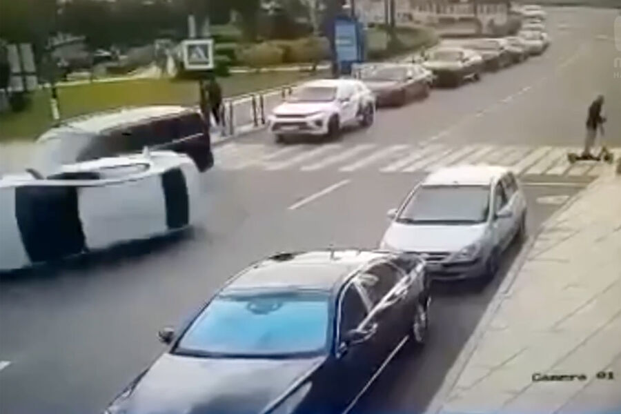 Мужчина на самокате спровоцировал аварию с переворотом в Санкт-Петербурге, момент попал на камеры наблюдения. Об этом сообщает Telegram-канал «Mash на Мойке».