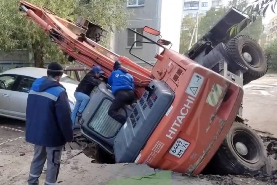 В Миассе экскаватор провалился в глубокую яму и раздавил припаркованный рядом легковой автомобиль. Об этом сообщает Telegram-канал «31tv.ru».