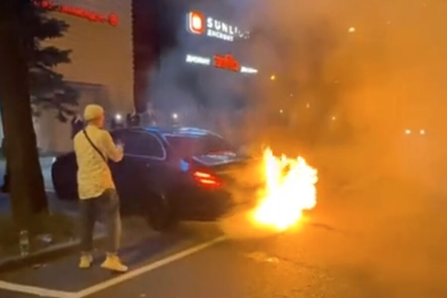 «Подъем»: в Москве возгорание Mercedes во время пробуксовки попало на видео