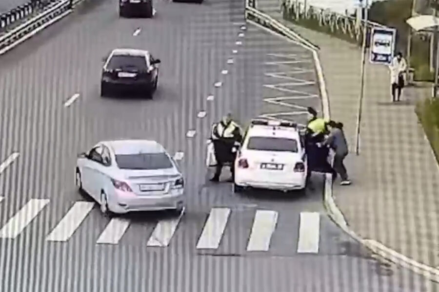 Нападение на сотрудника ДПС мужчины с ножом в петербургском Колпино попало на видео. Запись опубликовало Главное следственное управление СК РФ по Санкт-Петербургу.