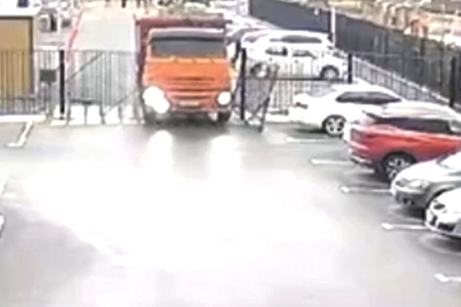 Инцидент произошел во дворе дома по улице Амурской, 39. Судя по видео, грузовой автомобиль стоял на территории парковки, но в какой-то момент поехал вперед, пробил ворота и покатился в сторону многоэтажки. При этом в кабине не было водителя.