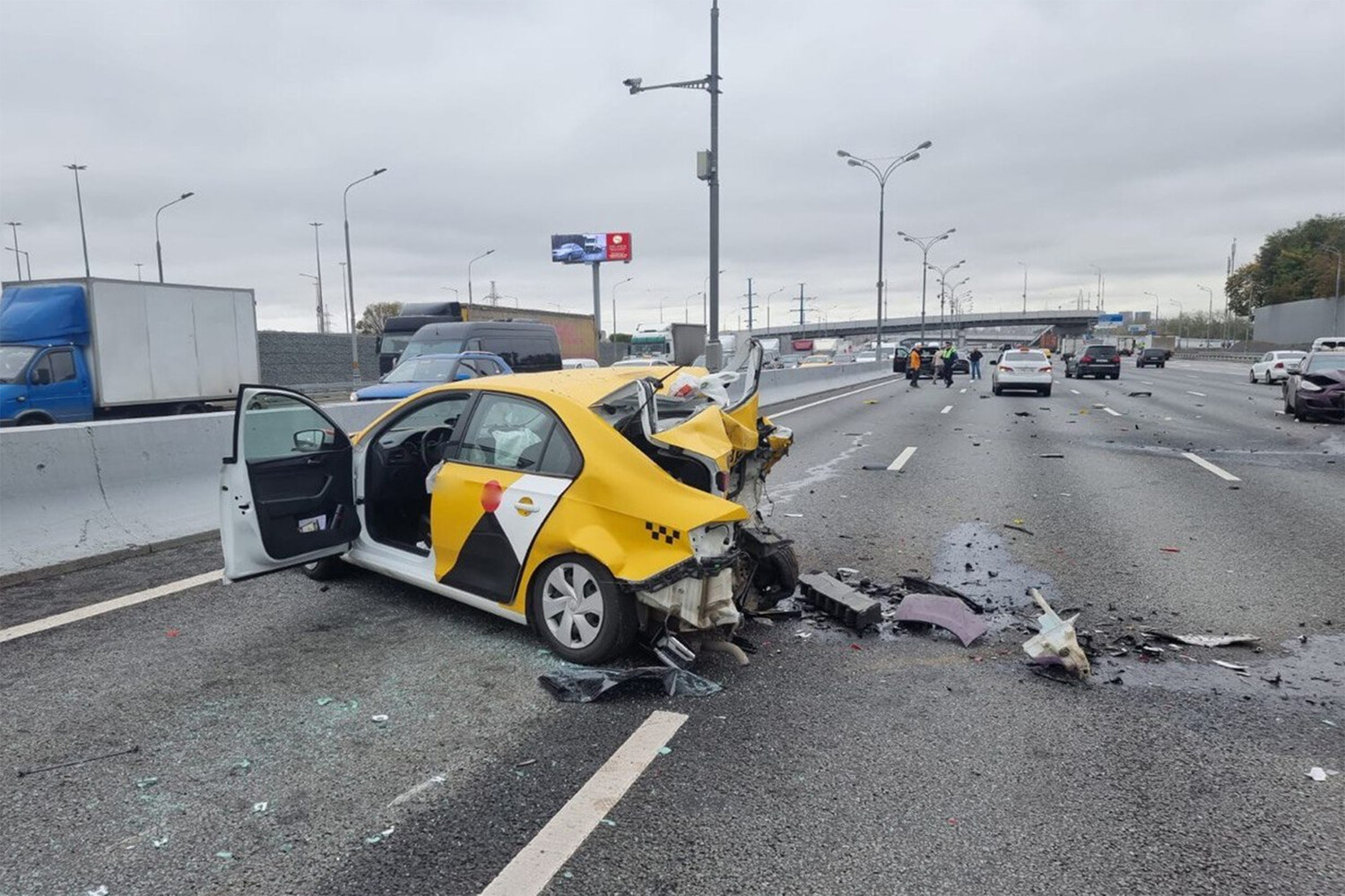 Инцидент произошел на внутренней стороне 90-го километра МКАД. По предварительным данным, водитель Hyundai наехал на два автомобиля, которые стояли в крайней левой полосе после мелкой аварии, после чего столкнулся еще с двумя машинами.