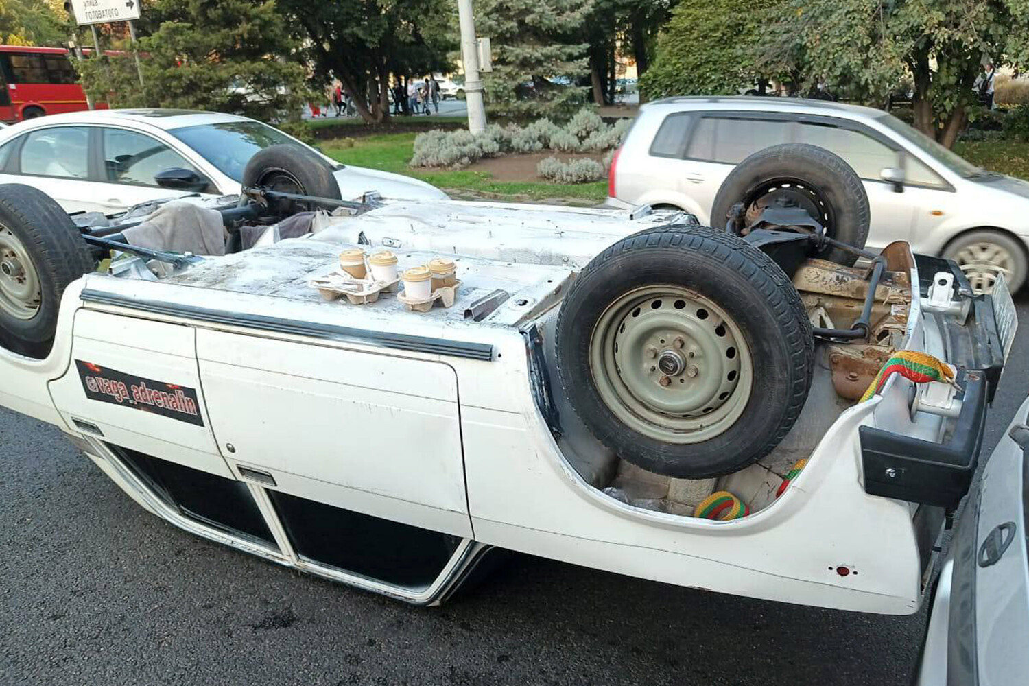 В Краснодаре ГИБДД оштрафовала водителя перевернутой машины в арбузном шлеме