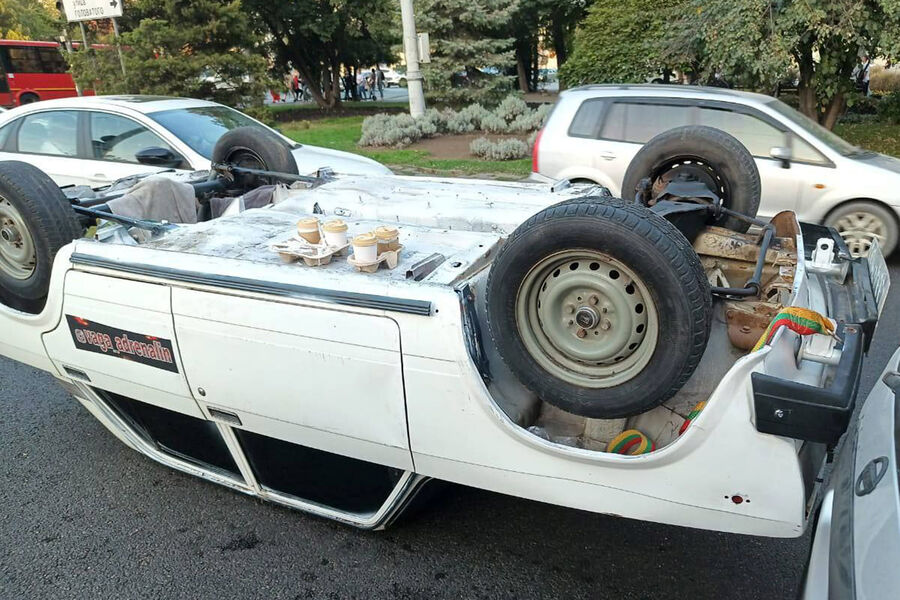 Автомобиль ВАЗ-2107 модифицировали так, чтобы он смог ездить на крыше. Для этого двигатель и ведущие колеса были установлены в салоне за лобовом стеклом, а также срезана крыша. Место водителя и система управления в «семерке» располагаются у задней оси. Местные жители опубликовали в соцсетях видео с водителем, который управлял перевертышем с арбузной коркой на голове.