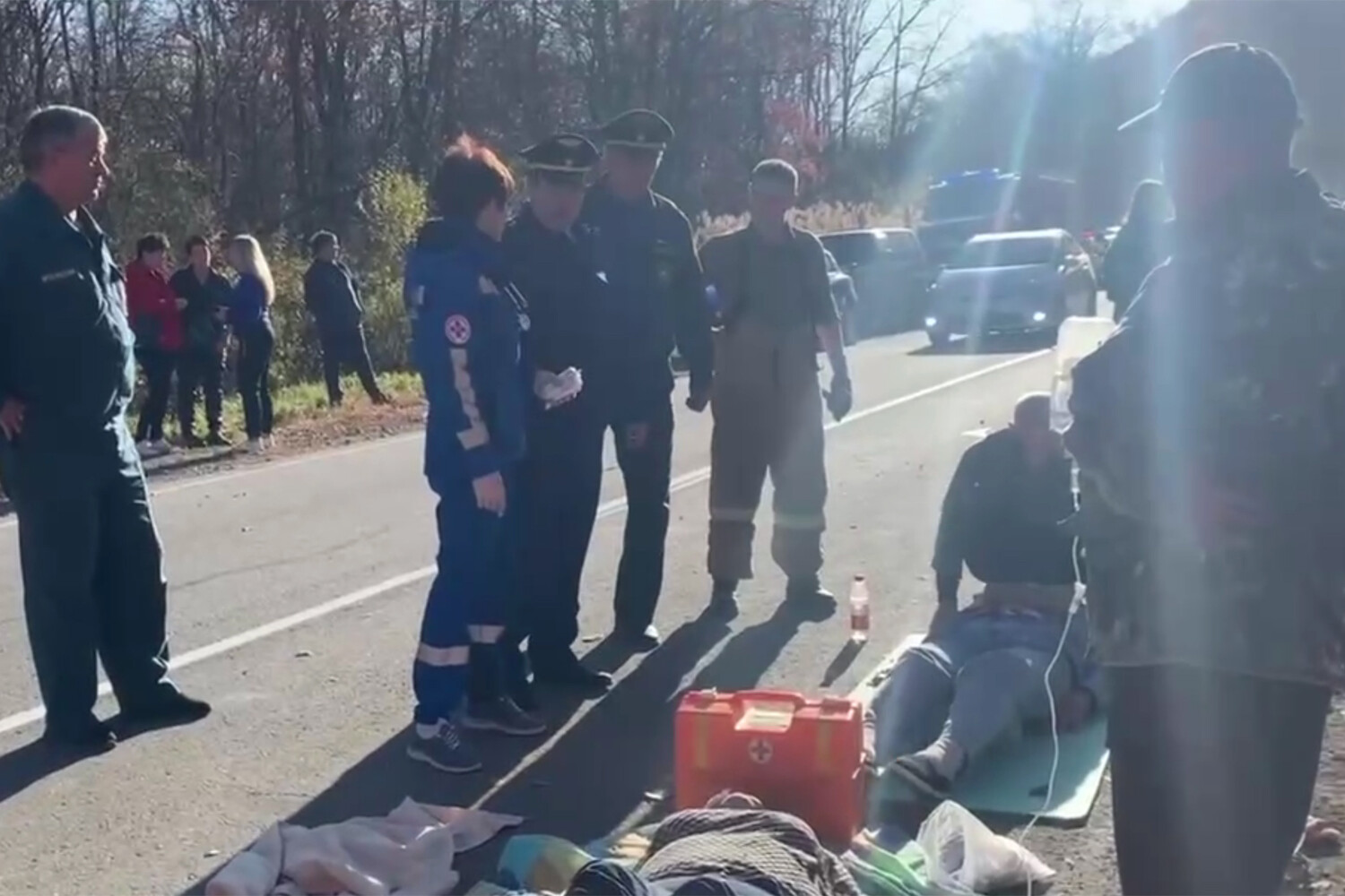 В прокуратуре пояснили, что автобус, следовавший из Китая в Уссурийск, перевернулся, так как водитель не справился с управлением и вылетел с проезжей части. На месте работают спецслужбы.